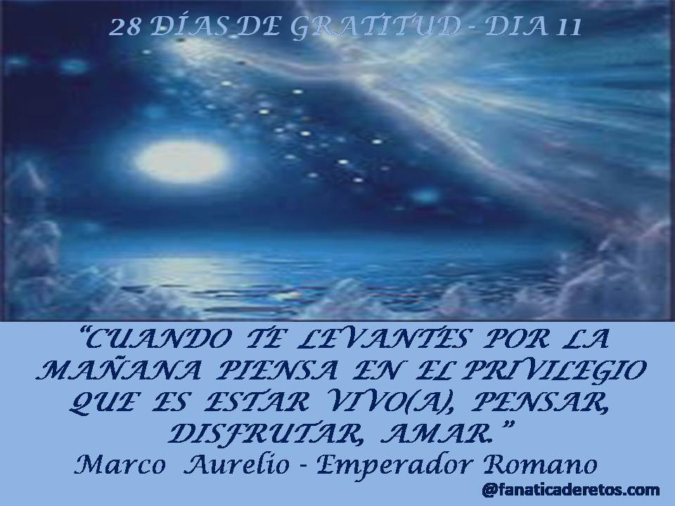 Día 11. UNA MAÑANA MÁGICA. Hola. Feliz y bendecido día para todos. Que el creador les bendiga en este maravilloso día. Hoy comentaremos el ejercicio 11, “Una Mañana Mágica” Iniciaremos con una cita del conocido Emperador Romano Marco Aurelio, quien dijo: “CUANDO TE LEVANTES POR LA MAÑANA PIENSA EN EL PRIVILEGIO QUE ES ESTAR VIVO(A), PENSAR, DISFRUTAR, AMAR.” La forma más fácil y sencilla de garantizarnos que nuestro día este lleno de Magia, es impregnarlo de Gratitud. Cuando incorpores la energía de gratitud en tu rutina matinal, sentirás y veras sus beneficios mágicos a lo largo de todo el día. Cada mañana está llena de oportunidades para dar gracias y…